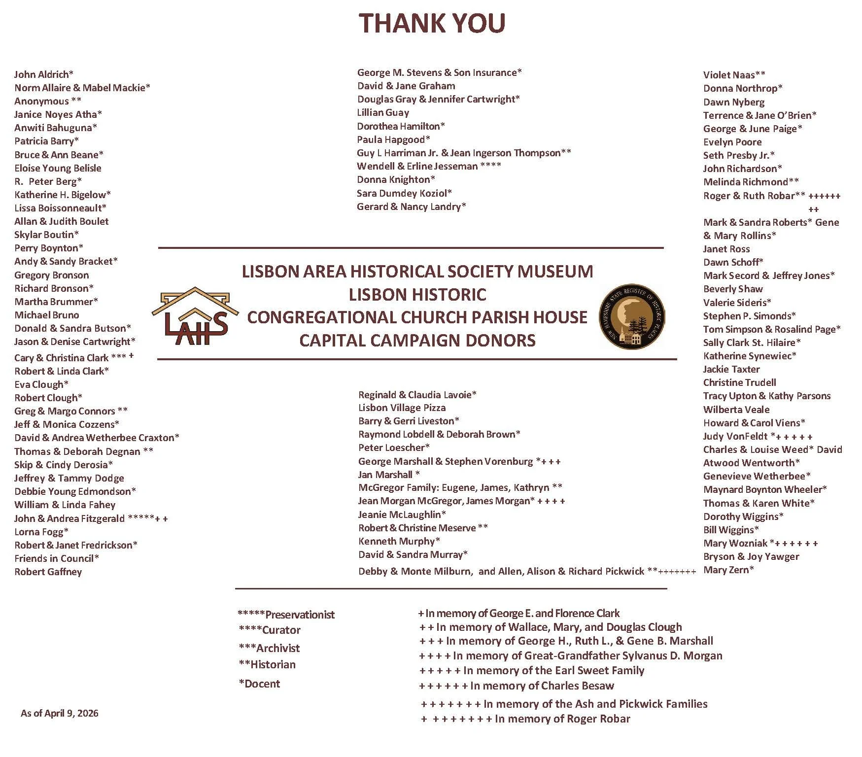 CAPITAL CAMPAIGN DONORS